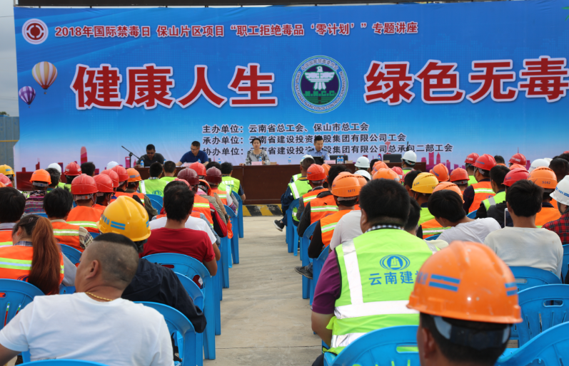 省建设投资控股集团承包部负责人施旭升介绍了省建投集团在保山建设情况,要求各项目负责人做好责任区禁毒工作,每位员工主动了解毒品危害,掌握预防毒品知识,坚决防止毒品危害。市总工会杨红梅副主席号召广大职工、农民工加强对禁毒的学习宣传,做到知毒、识毒、拒毒。积极参与禁毒斗争,努力营造人人支持、人人参与禁毒工作的良好氛围,共同构筑抵御毒品侵袭的防线,全力消除毒品危害,为促进全市经济社会持续健康发展创造和谐稳定的社会环境。强调工会是职工之家,广大职工要积极参与保山跨越发展先锋活动和保山职工素质建设工程,大力弘扬劳模、劳动、工匠精神,为保山跨越发展建功立业。