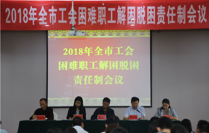 市人大常委会副主任、市总工会主席李元标出席会议并讲话。他指出:困难职工解困脱困工作是脱贫攻坚战略的重要组成部分。确保困难职工与全市人民同步进入全面小康社会,是党和政府交给我们工会的时代使命,各级工会一定要自觉以习近平新时代中国特色社会主义思想为指引,深入贯彻习近平扶贫方面的重要指示精神,以高度的历史使命感和政治责任感,切实增强工作紧迫感,竭力抓好工作落实,打赢困难职工解困脱困攻坚战。