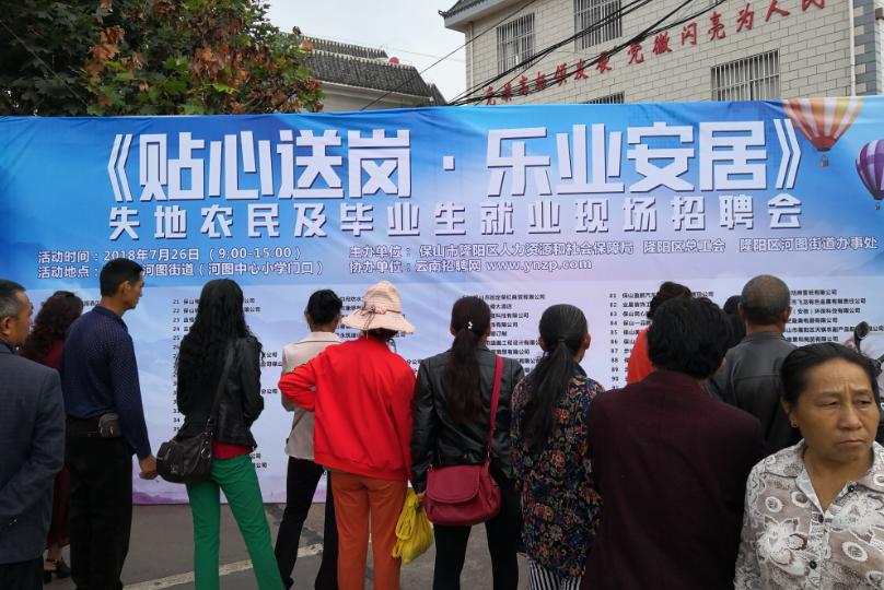 为深入贯彻十九大精神,结合保山跨越发展实际,服务拆迁核心区域失地农民及毕业生,促进基层群众就业,助力脱贫攻坚,隆阳区总工会联合区人社局和河图街道办事处于2018年7月26日举办失地农民及毕业生就业现场招聘会。