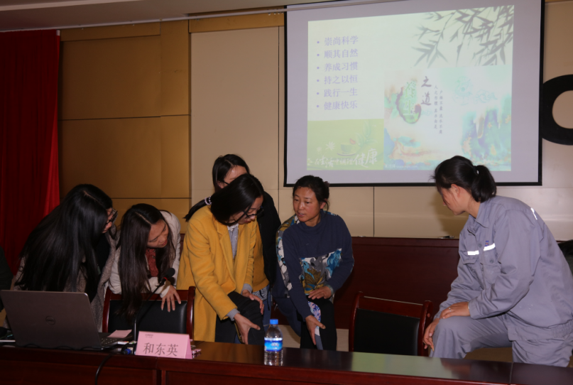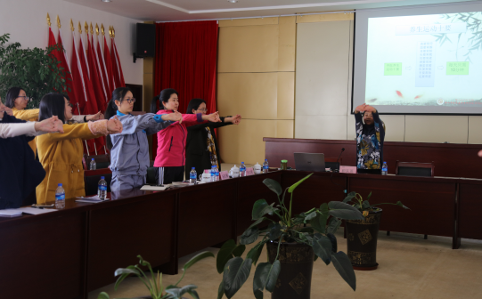 杨红梅副主席结合实际,就贯彻落实《女职工劳动保护特别规定》相关法律法规,维护女职工合法权益和特殊利益以及企业工会女职工工作进行了宣讲,和东英医生长期从事中医养生工作,具有丰富的临床经验,她从饮食、起居、情志、运动、按摩等几个方面生动讲授了女性健康保健知识。并手把手教女职工做一些保健操,就大家生活中的健康问题进行了细致的解答。
