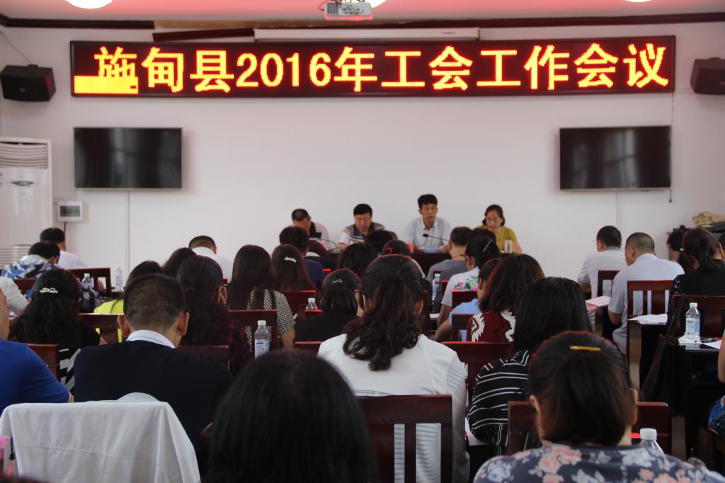 2016年8月17日上午,县总工会召开2016年工会工作会议,13各乡镇总工会主席与副主席、县直各委办局、省市驻施单位及部分企事业的工会主席等参加会议。