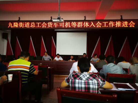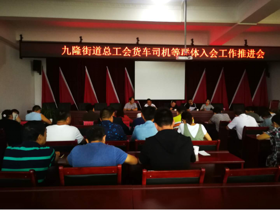 为深入贯彻落实习近平总书记重要讲话精神和关于加强基层工会建设“三个着力”的重要指示,有力推动市、区总工会关于推进物流货运企业建会及物流货运司机等群体入会工作,最大限度地把八大群体组织到工会中来,持续推进农民工入会工作,不断扩大工会组织和工会工作有效覆盖,在区总工会及九隆街道总工会的共同努力下,近日,九隆街召开了"货车司机等群体入会工作推进会",200多名保安员、送餐员、快递员丶护工护理、大货车司机等加入了工会组织。