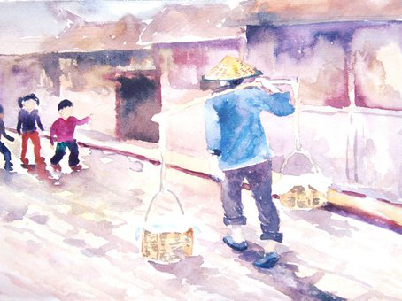 麦芽糖从形状上可分为两种,一种是丝状,一种是块状。丝状谓之丝糖,块状为白糖。年少时,每当听到寨子里传来“叮叮叮……叮叮叮……”的声音,馋嘴的小孩子们就知道是卖麦芽糖的来了。小伙伴们闻声而动,不约而同从家里跑出来,看到生意上门,卖糖人放下担子,扯开把式,小心地揭开竹箩里层层叠叠的油纸,待最里层的麦芽糖彻底露出,许多馋眯眯的小脑袋流着哈喇子立马挤过来,围得水泄不通。卖糖人被挤得几乎透不过气来,连连大喊:“槑槑们(念mei mei,乡下人对小孩的昵称),挤松些……挤松些,不急,不急,糖多着呢!”混乱中,有调皮鬼悄悄用手指蘸了一些糖面连手指放进了嘴里,和蔼的卖糖人嘴角微微一笑,也不做计较,继续他的买卖。